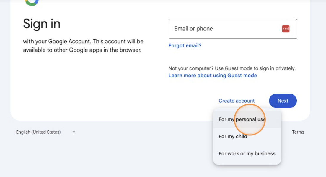 1. Go to google.com (or any Google product login page).